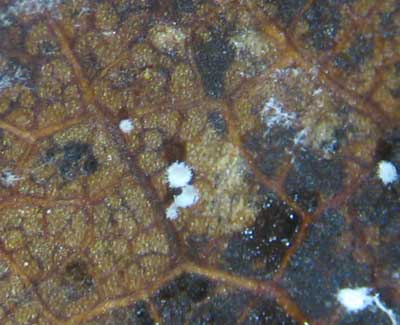 Kristalkopfranjekelkje of Incrucipulum capitatum (voorheen Lachnum capitatum), op eikenbladeren. Vindplaats: Leuvenheim, september 2013 ascomyceten