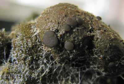 Olijfgeel spikkelschijfje of Ascobolus crenulatus groeit op uitwerpselen (mest) van gewervelde dieren. juni 2009 ascomyceten