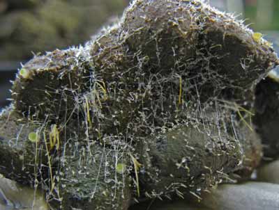 Olijfgeel spikkelschijfje of Ascobolus crenulatus groeit op uitwerpselen (mest) van gewervelde dieren.