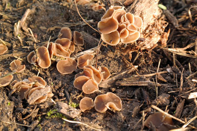 Olijfkleurige bekerzwam of Peziza granularis, in loofbossen op de grond Vindplaats: Wichmond, december 2015 ascomyceten