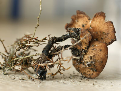 Salomonsstromabekertje of Stromatinia rapulum, parasiet op de wortelstokken van de welriekende salomonszegel.