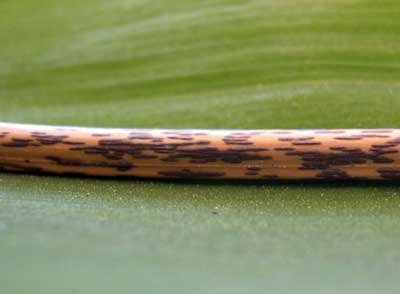 Varenstreepzwam of Rhopographus filicinus, op stengel van adelaarsvaren.