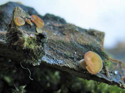 Wilgenhoutvlieskelkje of Hymenoscyphus salicinus, op takken en twijgen van voornamelijk wilg.
