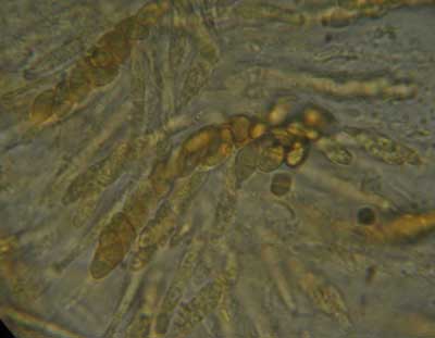Wratsporig meniezwammetje of Cosmospora coccinea, op buisjeszwammen in loofbossen